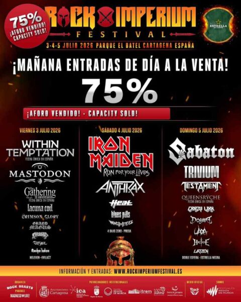 ¡No te quedes fuera del Rock Imperium Festival 2026! La organización ha confirmado que las entradas de día saldrán a la venta mañana, jueves 13 de noviembre de 2025, a las 12:00 h. Con el aforo ya vendido en torno al 75 %, se espera una demanda altísima desde el primer minuto.