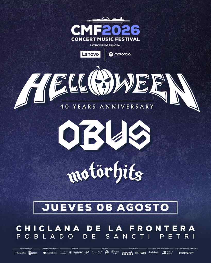 Helloween, la legendaria banda alemana de power metal, ha confirmado un concierto en Chiclana de la Frontera (Cádiz) para el 6 de agosto de 2026, dentro del marco del Concert Music Festival.