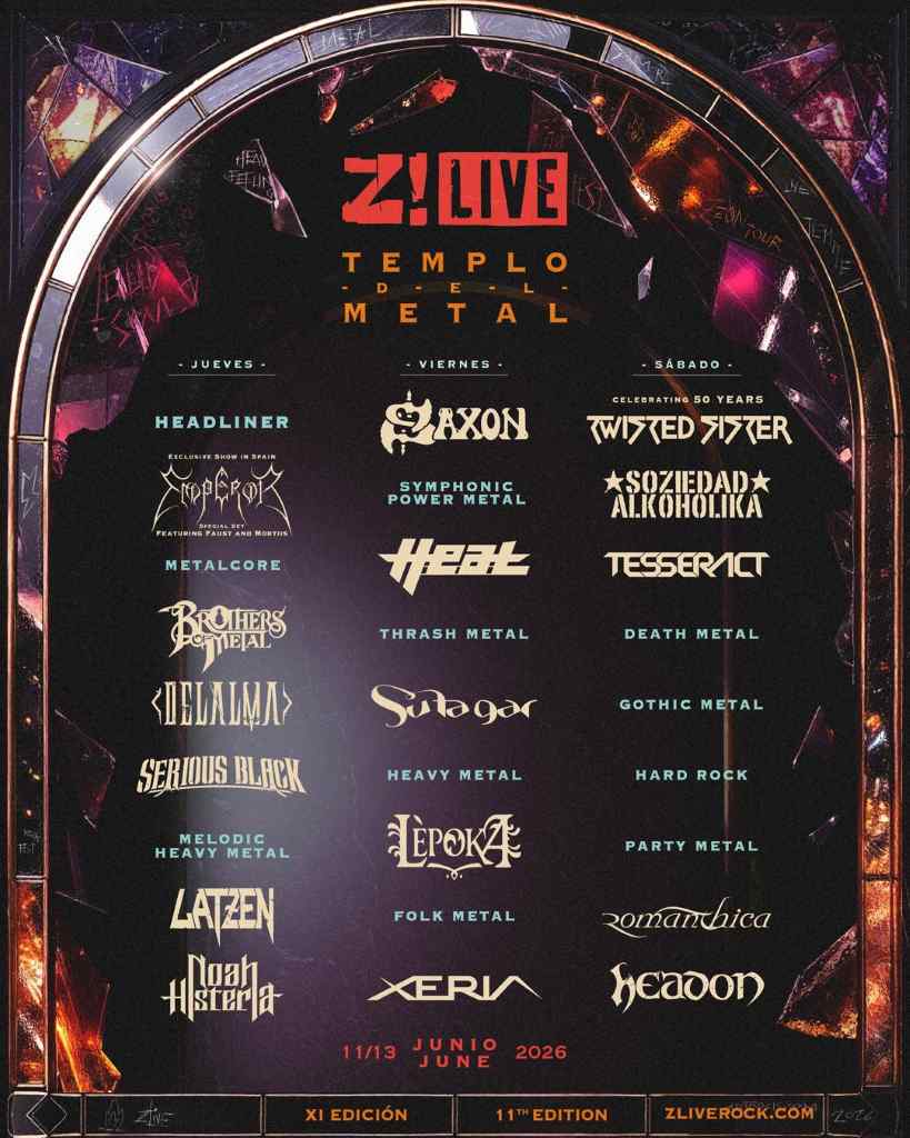 Hasta el momento, el cartel incluye nombres destacados como Twisted Sister (celebrando su 50º aniversario), Saxon, Emperor — con su único concierto en España en 2026 —, junto a bandas estatales y europeas de diversos estilos como metal extremo, power, folk y hard rock.
