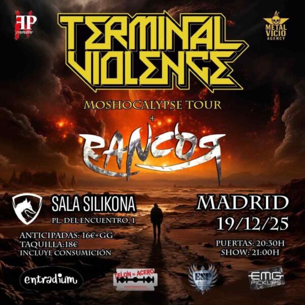 Las bandas nacionales Terminal Violence y Rancor confirmaron una nueva cita en la capital: su actuación conjunta tendrá lugar el próximo 19 de diciembre de 2025 en la Sala Silikona (Plaza del Encuentro, 1, Madrid).
