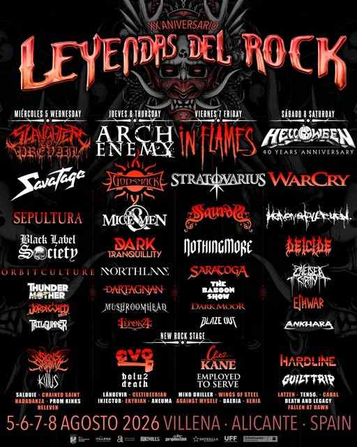 El festival Leyendas del Rock ha confirmado su cartel definitivo para 2026, con un total de 58 bandas y la incorporación de dos nombres destacados: Arch Enemy y Stratovarius — este último con un setlist especial basado en sus álbumes clásicos Episode, Visions, Destiny e Infinite.
