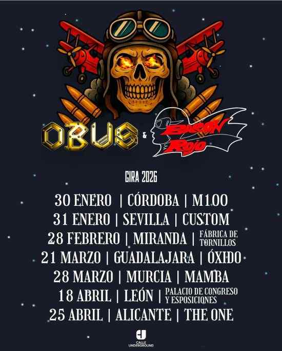 Dos auténticas leyendas del heavy metal español como son Obús y Barón Rojo han confirmado que unirán fuerzas este año para llevar a cabo una gira conjunta por todo el país. Una noticia histórica para los seguidores del género, que podrán disfrutar en una misma noche de dos de las bandas más influyentes del rock duro estatal.