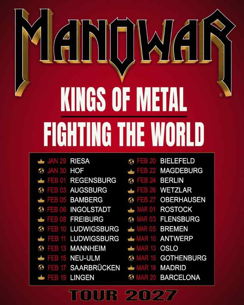 - 13 de marzo de 2027 – Oslo (Noruega), con una actuación centrada en el álbum “Kings Of Metal”, interpretado íntegramente además de himnos clásicos de la banda.