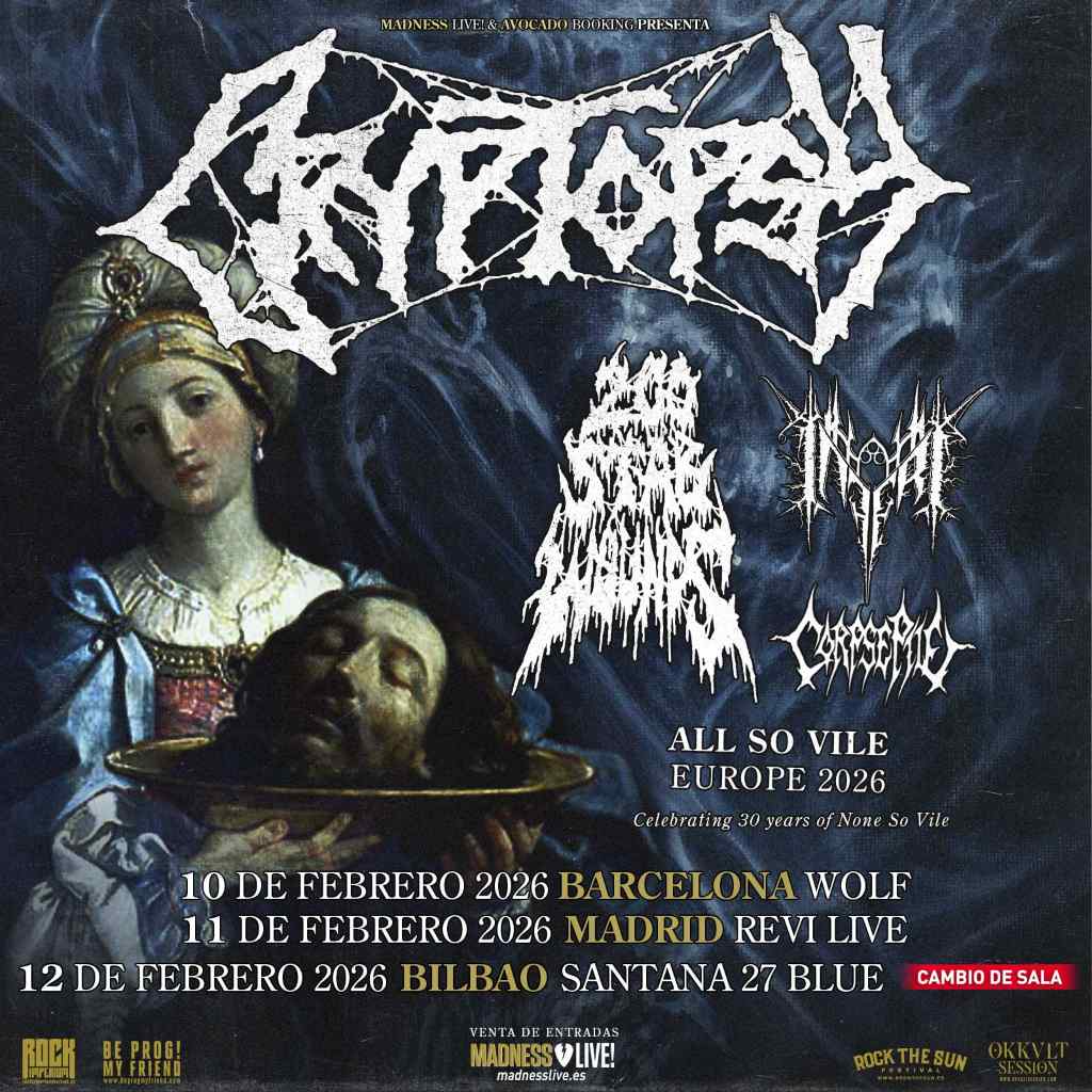 El esperado concierto de la legendaria banda canadiense de death metal técnico Cryptopsy, inicialmente programado para el 12 de febrero de 2026 en la sala Groove de Portugalete, ha sido trasladado a la Sala Santana 27 Blue de Bilbao. Esta medida se ha tomado tras agotar todas las entradas con más de un mes de antelación y ante la demanda masiva que dejó fuera a numerosos fans que querían asistir.
