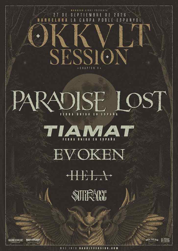 El festival dedicado a los sonidos más oscuros y extremos del metal, Okkult Session 2026, ha desvelado su cartel completo con Paradise Lost como cabeza de cartel. Esta quinta edición se celebrará el 27 de septiembre de 2026 en La Carpa de Poble Espanyol de Barcelona, reuniendo un elenco de bandas que exploran las vertientes más atmosféricas, densas y ritualísticas del metal contemporáneo.
