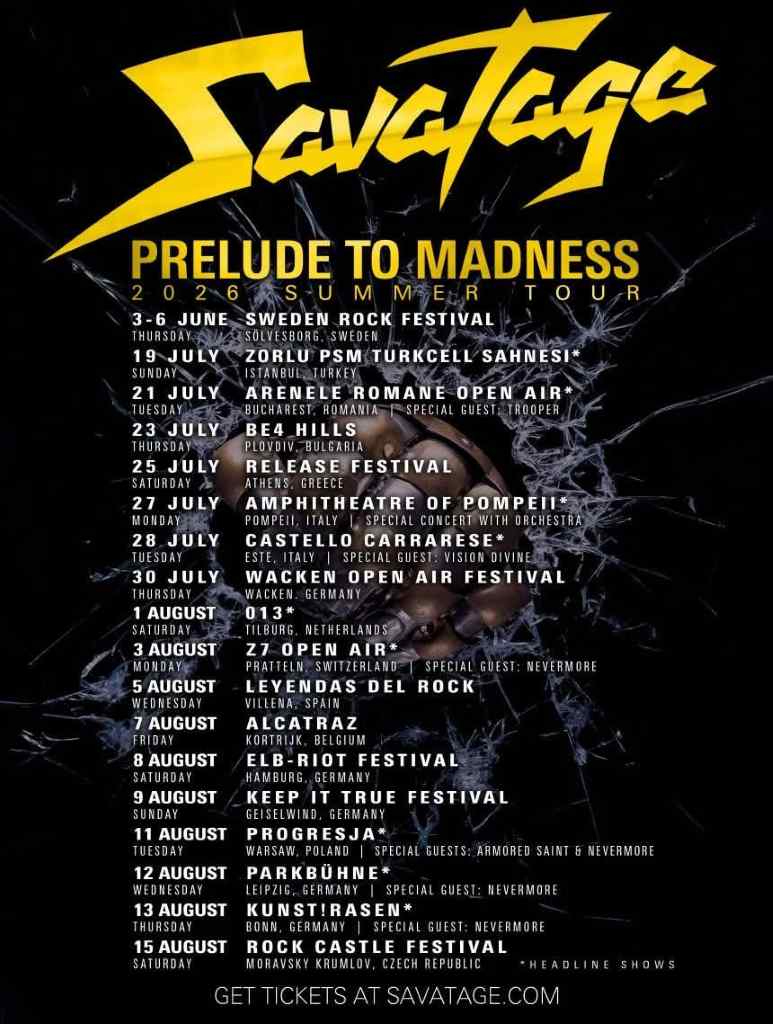 Además del álbum en directo, Savatage ha confirmado su regreso a los escenarios europeos con la gira “Prelude To Madness”, que incluirá fechas como cabeza de cartel y apariciones en importantes festivales de verano durante 2026. Entre los lugares destacados se encuentran: