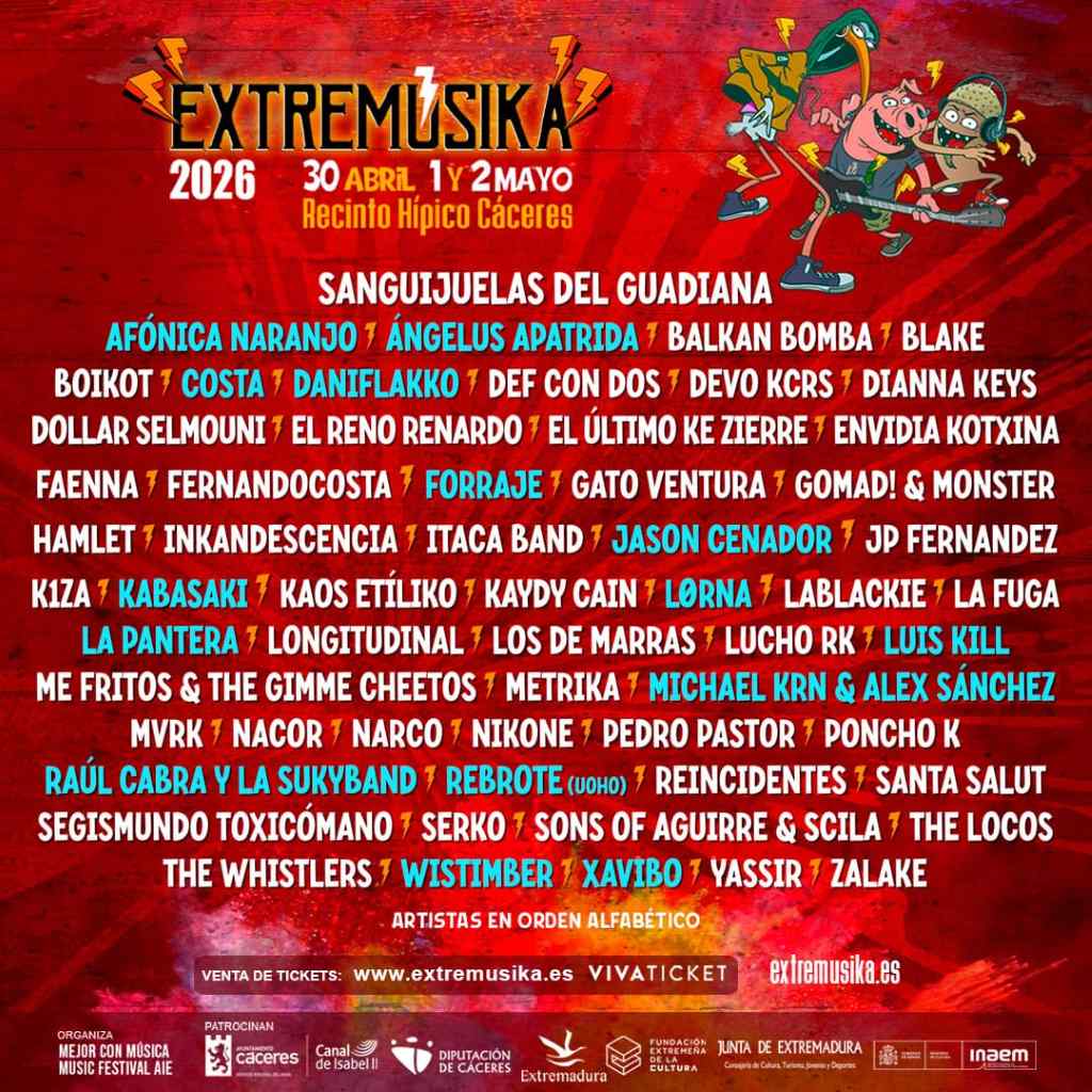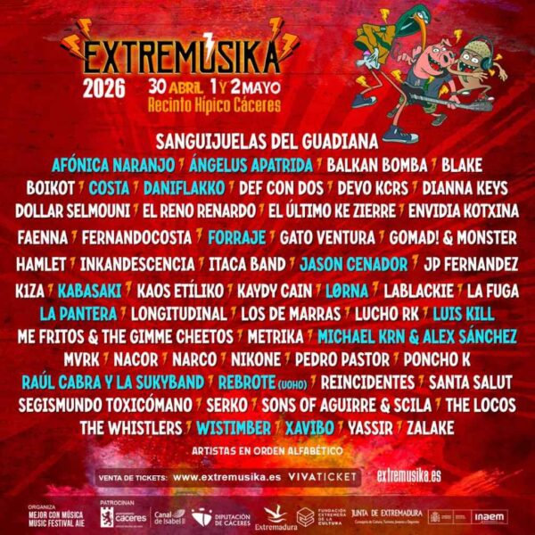 El festival Extremusika 2026 ha completado su cartel con una última tanda de confirmaciones que apuntalan una edición potente y diversa dentro del rock y el metal estatal. El evento, que se celebra en Extremadura, incluye nombres consagrados y propuestas emergentes en directo para un fin de semana intenso de música en vivo.
