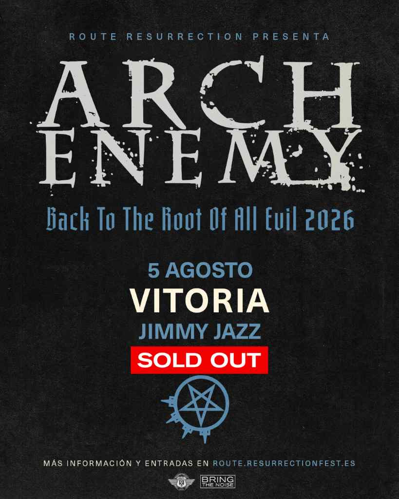 La legendaria banda sueca de death metal melódico Arch Enemy ha logrado agotar todas las entradas para su esperado concierto en Vitoria‑Gasteiz, previsto para el 5 de agosto de 2026 en la emblemática sala Jimmy Jazz. La actuación forma parte de su gira “Route Resurrection”, en la que el grupo está trasladando su potente directo a recintos más íntimos y selectos por Europa, ofreciendo una experiencia única para sus seguidores en espacios de aforo reducido.