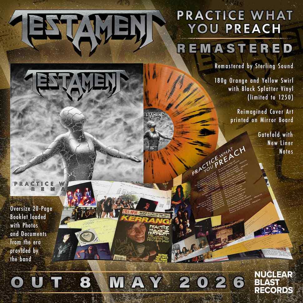 La legendaria banda de thrash metal de la Bay Area Testament ha anunciado el relanzamiento remasterizado de su influyente álbum de 1989 “Practice What You Preach”, uno de los trabajos más emblemáticos de su discografía. Esta nueva edición verá la luz el 8 de mayo de 2026 a través del sello Nuclear Blast, devolviendo al presente un disco clave en la evolución del thrash metal.