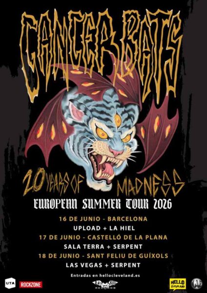 La banda canadiense Cancer Bats ha confirmado su regreso a nuestro país con una serie de conciertos en España en junio de 2026, dentro de su gira “20 Years of Madness – European Summer Tour 2026”, con la que celebran dos décadas de trayectoria.