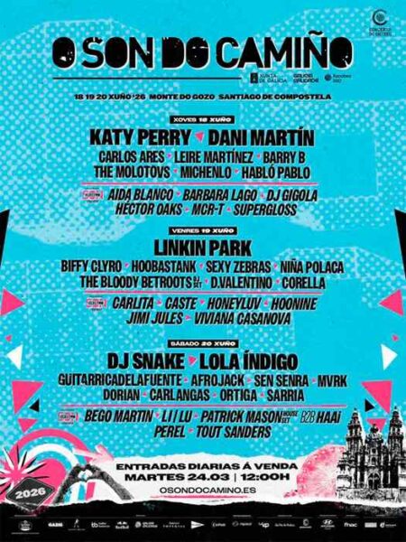 Con esta distribución por días, O Son Do Camiño perfila una edición 2026 que promete ser una de las más potentes de su historia, especialmente con una jornada como la del viernes que reunirá a algunos de los nombres más destacados del rock internacional actual.