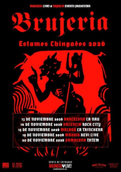 Con este anuncio, Brujeria reafirma su vigencia dentro de la escena extrema, prometiendo una gira cargada de intensidad y actitud que recorrerá algunas de las principales ciudades de la península en noviembre de 2026.