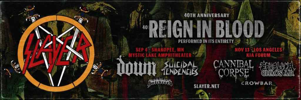 Estos conciertos serán eventos especiales en los que la banda ofrecerá la interpretación íntegra de “Reign In Blood”, acompañada de otros clásicos de su repertorio.