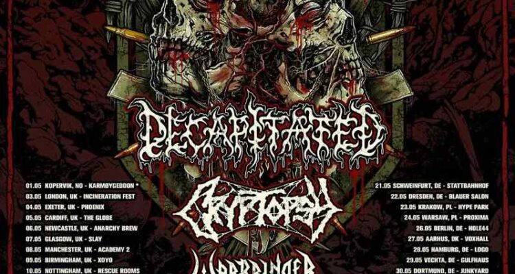 DECAPITATED, CRYPTOPSY, WARBRINGER y CARNATION se unen en una gira europea denominada, «Infernal Bloodshed Over Europe 2025». El tour empezará el 1 de mayo de 2025 en Karmøygeddon Metal Festival en Karmøy, Noruega y terminará el 8 de junio en Maastricht, Países Bajos. Venta de...