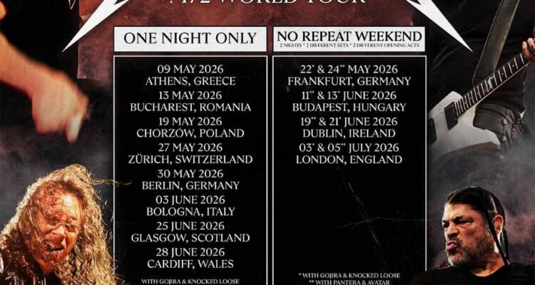 Metallica, anuncia gira europea 2026 con Pantera, Gojira y Avatar